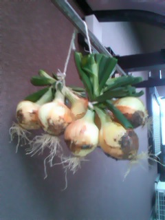 投稿日: 2012年5月1日新玉葱 「この冬は特に寒かったのでタマネギの生育が遅くなったけど、立派なタマネギが出来たよ」と農業者の方から頂いた「新玉葱」です。 キチンと吊るせるようにくくって頂いています。 このように日の当たらない場所に吊るしておくと良いようです。新玉葱は甘味があってとても美味しいですね。 昨夜早速、頂きました。