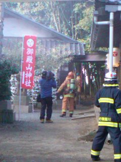 1月26日の文化財防火デーに合わせて御殿山神社で消防訓練が行われました。