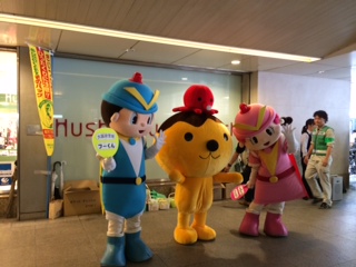 今回は大阪府警のキャラクター「フーくん」「ケーちゃん」そしてテレビ大阪のキャラクター「たこるくん」もキャンペーンに参加し、たこるくんのイラスト入り防止カバーが無料配布され、通行されている方々も足を止め、自転車にカバーを装着してもらってはりました。