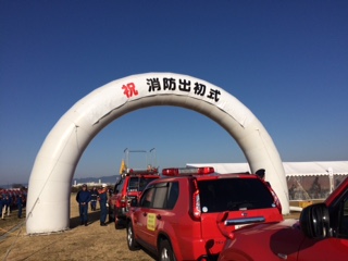 枚方寝屋川消防組合、寝屋川市消防団、枚方市消防団の消防出初式が寝屋川市太間地先 淀川河川公園で行われました。