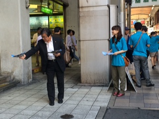 昨日、夕方は枚方市駅にて活動を行いました。