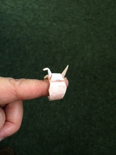 3枚目の写真は一枚の折り紙から作られた鶴の指輪。