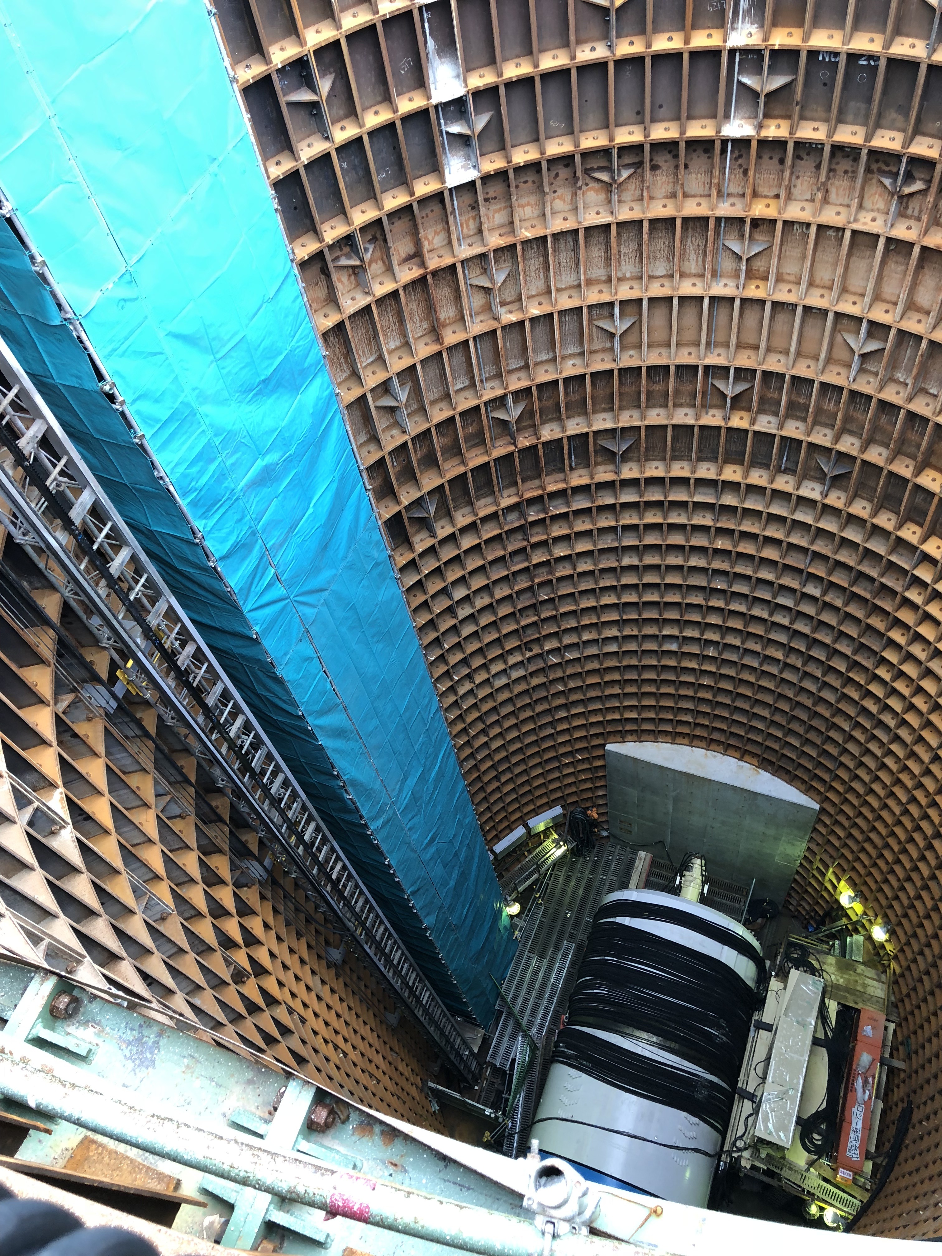 深さおよそ28メートルの立坑からシールドで1.2キロ内径3.5メートルの貯留管を作っていきます。
