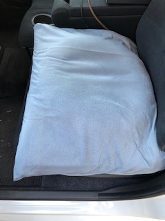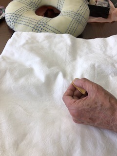 木綿の布を縫い付けその上にドーナツ状の座布団、これも縫い付けてくださり、カバーも作ってくださり、そしてシートを手作りの紐でくくって頂きました。