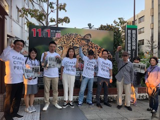 自民党大阪府連所属の他市の議員さんたちと大阪市分割案(都構想)に対する反対のチラシ配布を行いました。