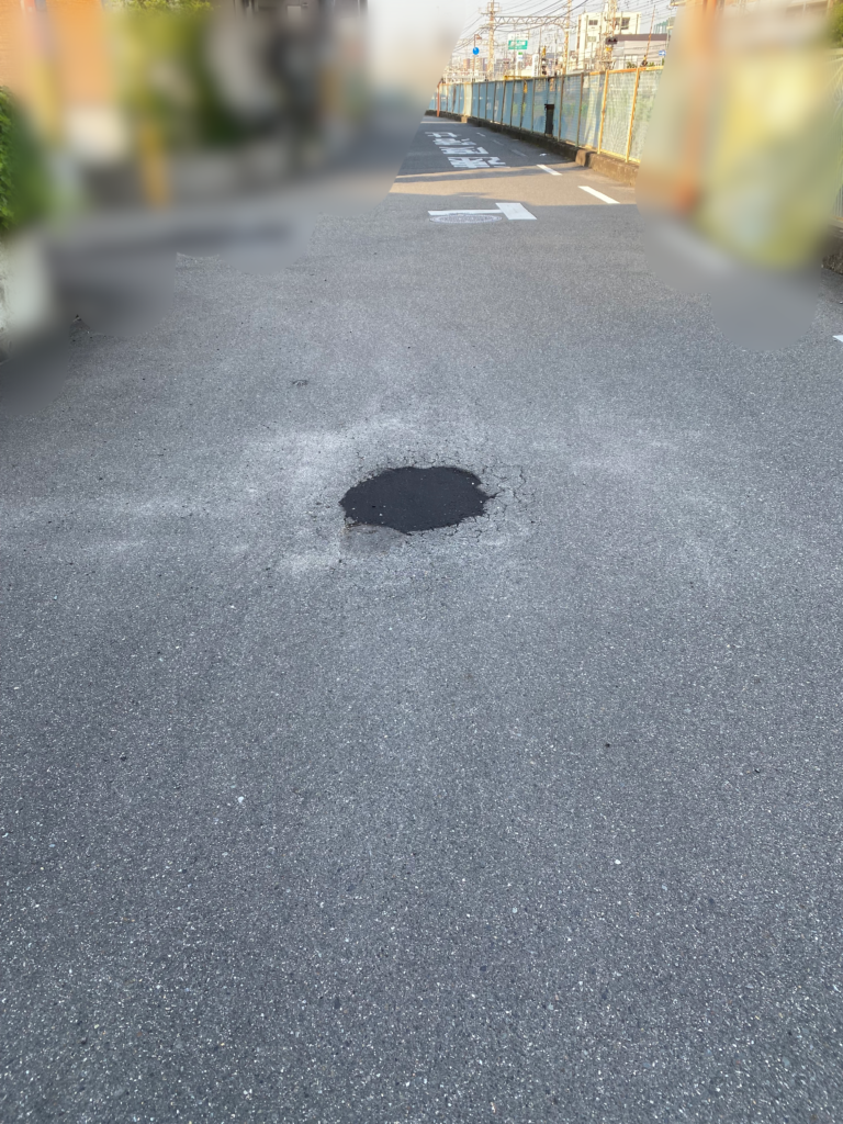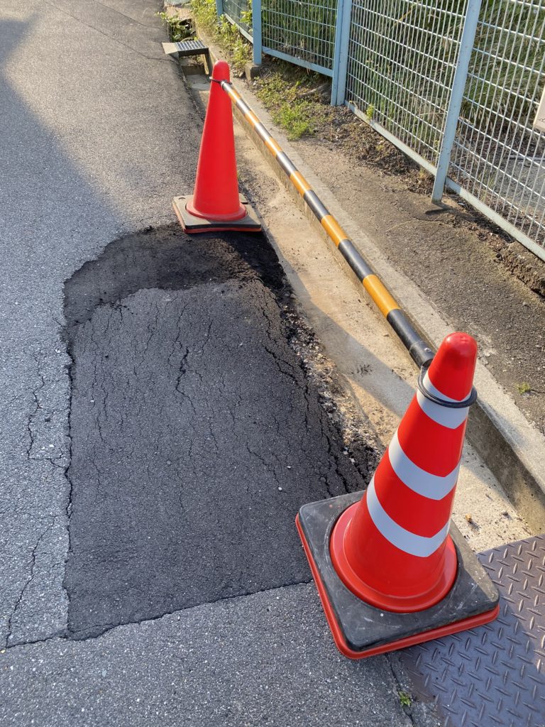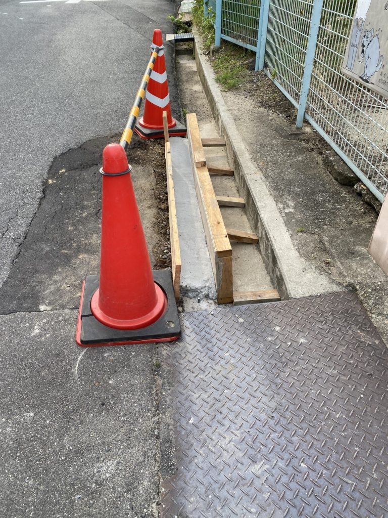 先日、道路にコーンを置いて仮舗装して頂いた場所ですが、次へのステップへと進んでいます。