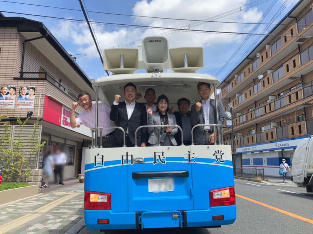 自由民主党大阪府連の街宣車に長友議員、佐藤ゆかり代議士の後援会の皆様、そしてチームSATOの常 隼人さんと共にワクチン接種について街宣活動を行いました。(写真撮影の時のみマスクを外しました。)
