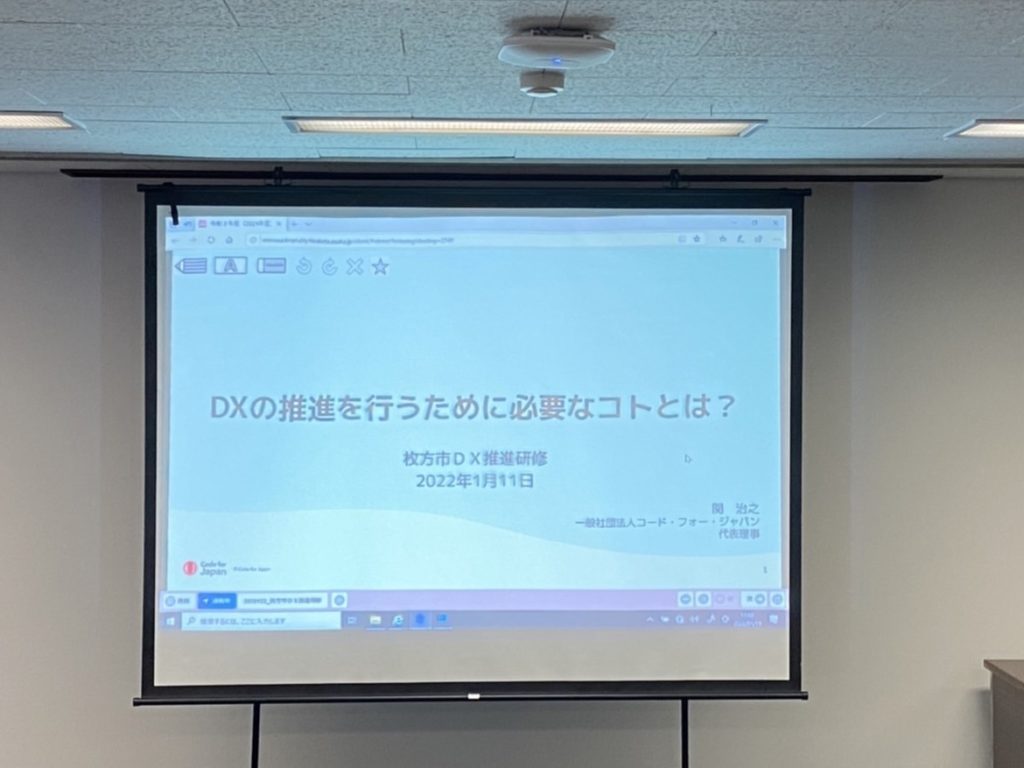 「DXの推進を行うために必要なコトとは?」と題し、本市のデジタルトランスフォーメーション・フェローの方よりお話をお聞きしました。