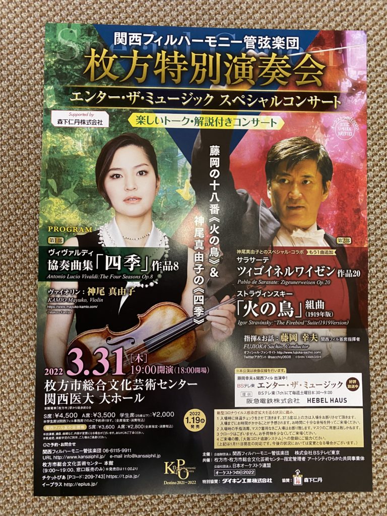 今回は3月31日(木)19時より枚方市総合文化芸術センターで行われる”関西フィルハーモニー管弦楽団 枚方特別演奏会”のお話ももちろんお聞きしました。