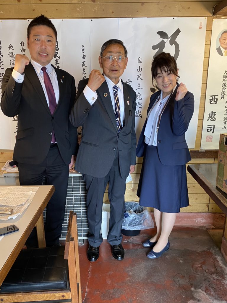 残念ながら候補者ご本人にお会いする事はできませんでしたが、大阪府連幹事長の西 惠司 府議と久しぶりにお会いする事ができました。