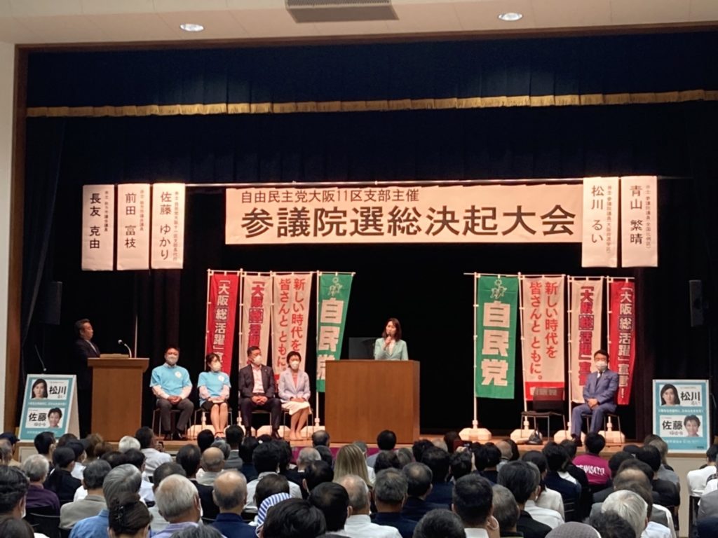 夜には大阪第11選挙区支部主催の参議院選総決起大会へ。