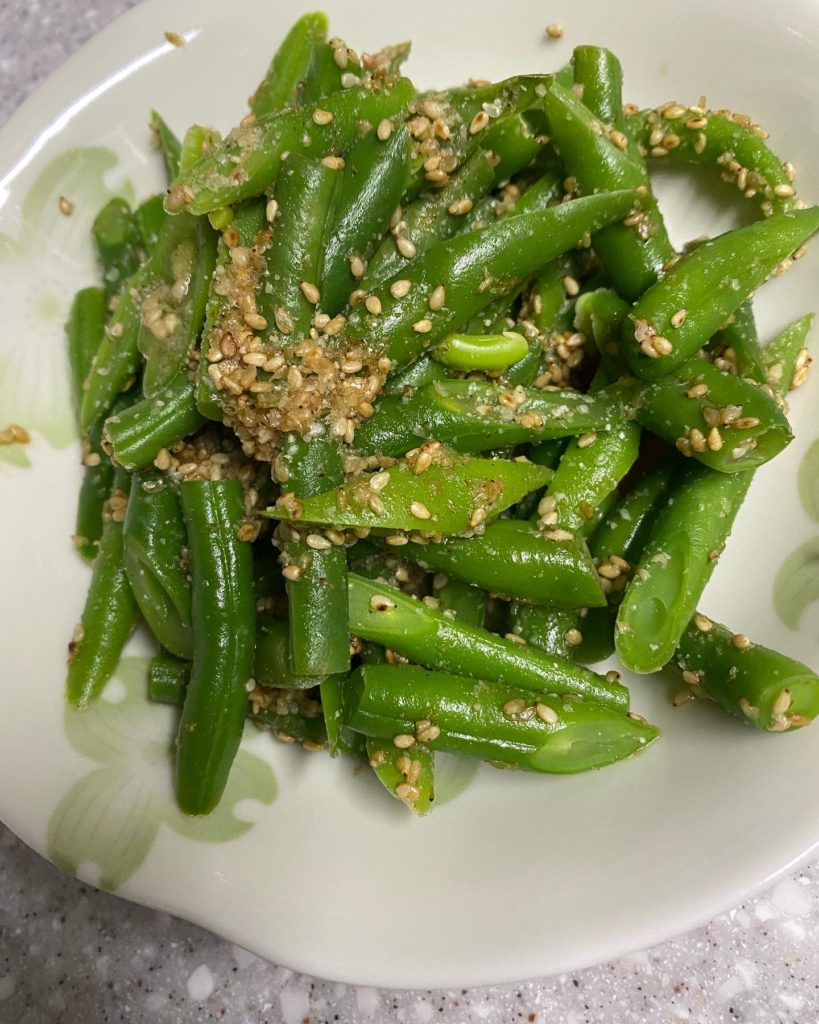 夜は、農業者の方から頂いたインゲンを胡麻和えにしました。