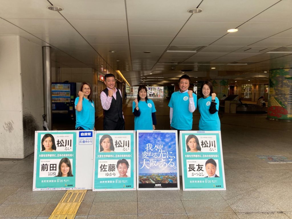 佐藤 ゆかり前衆議院議員、片岡 弘子交野市議、上堀 広美11選挙区支部副幹事長と街宣活動を行いました。