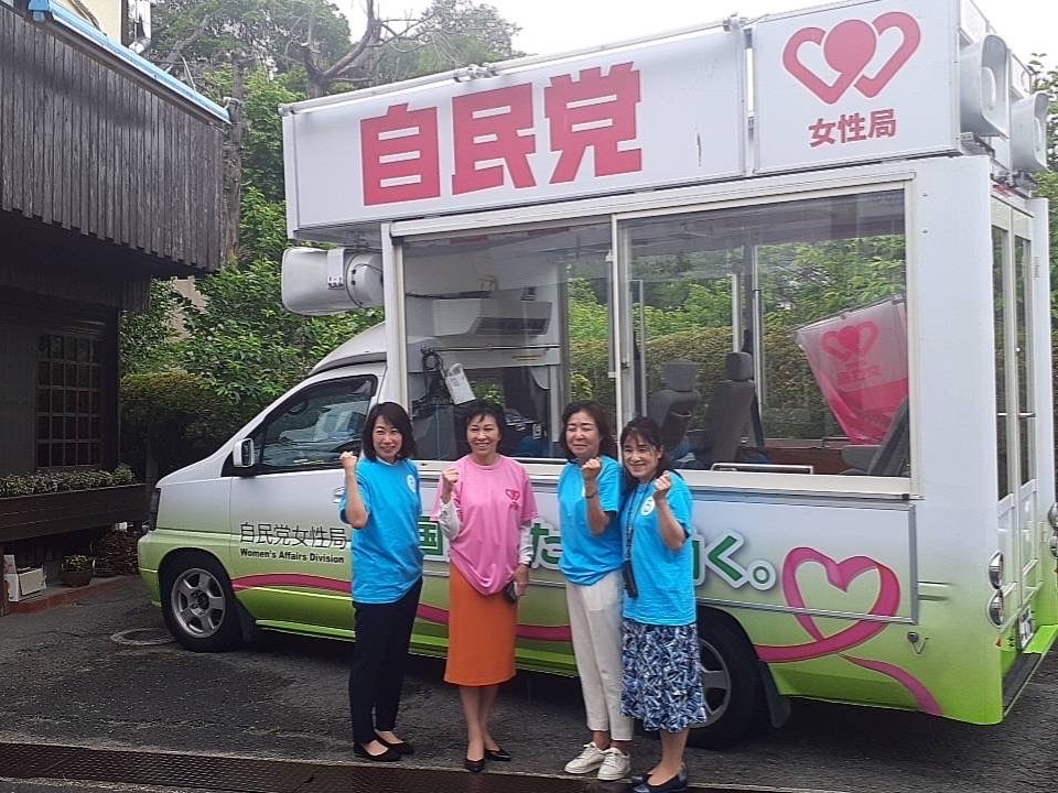 その後、自民党女性局の街宣車「スマイル号」に乗り込み