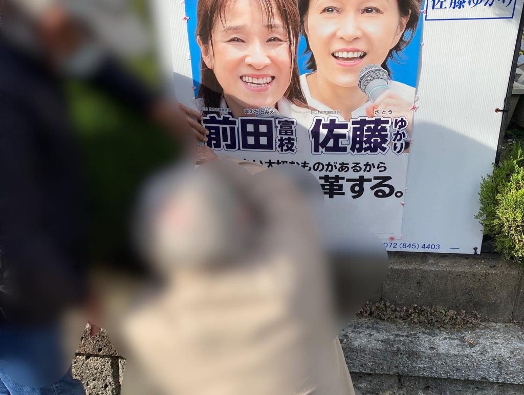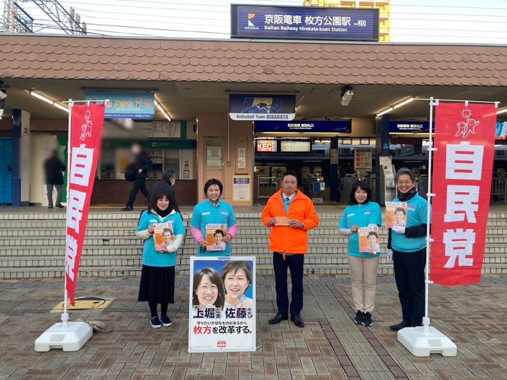 上堀さんの地元の枚方公園駅にて佐藤 ゆかり前衆議院議員、長友議員、常さんと活動させて頂きました。