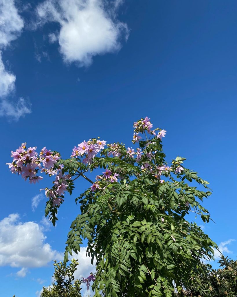 青空に皇帝ダリアがとても綺麗に咲いていました。