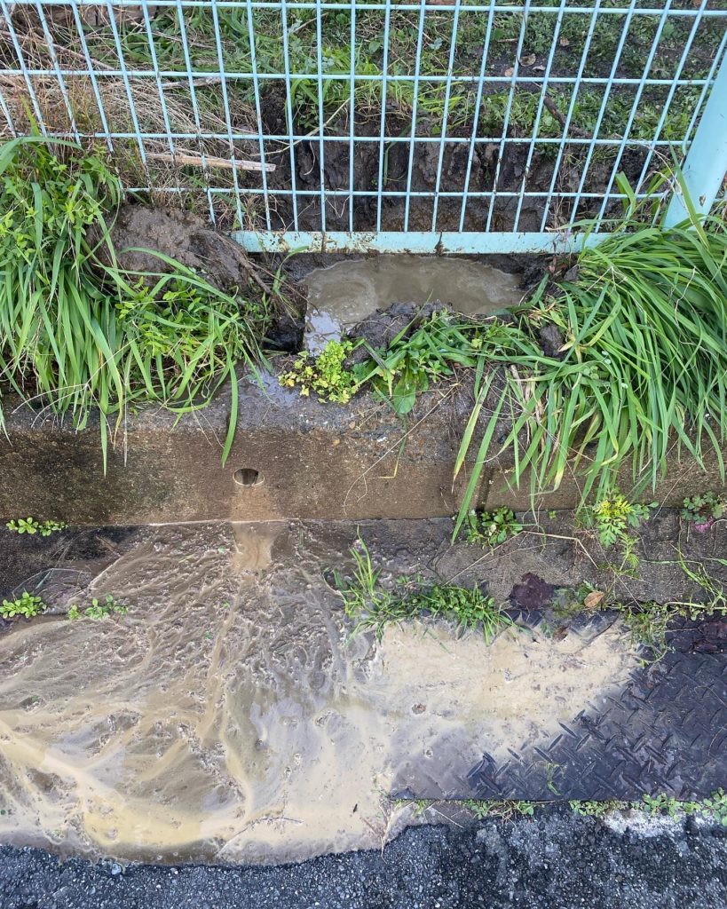 学校へ行く途中、校内の敷地内から水が流れており、学校に報告。