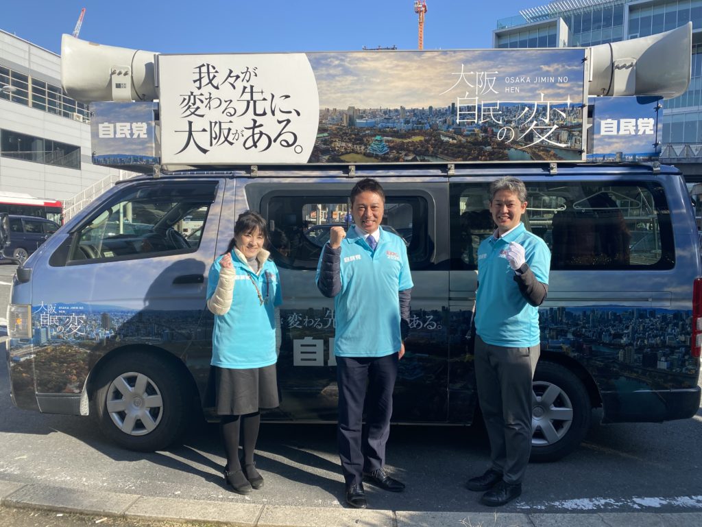 今日は自民党大阪府連の街宣車で枚方市内を回りました。