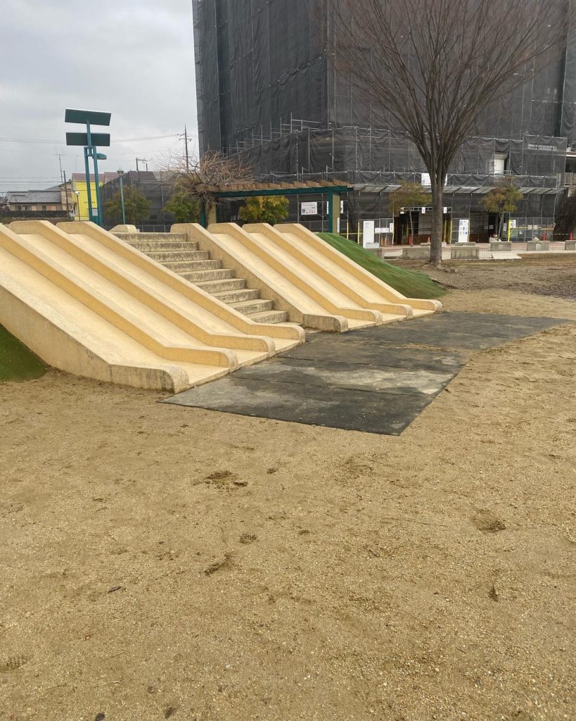車塚公園の滑り台の降りた所が降雨後水たまりができて滑る事が出来ないという要望を受け、今年初めにマットを敷いて頂きました。