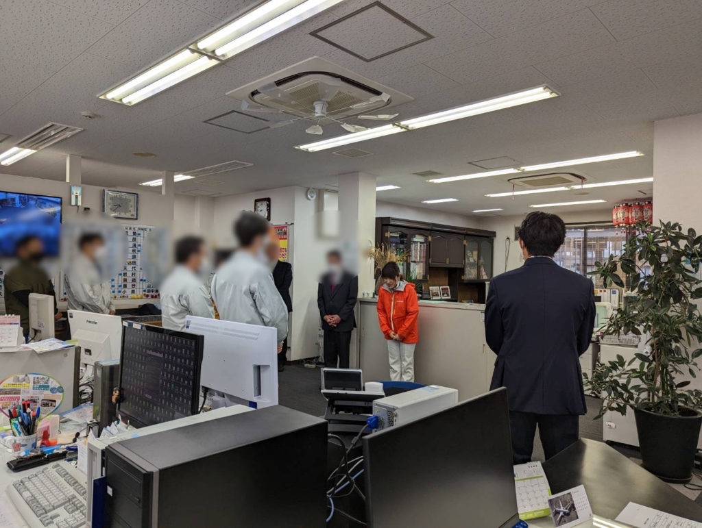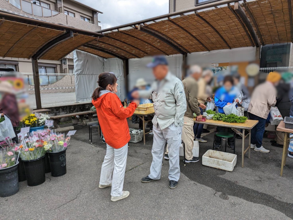 その後は会社の朝礼、そして地域の朝市へ。