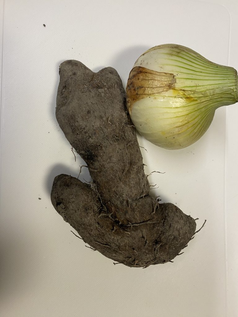 そして今夜は昨日朝市でいただいた新玉ねぎと山芋。
