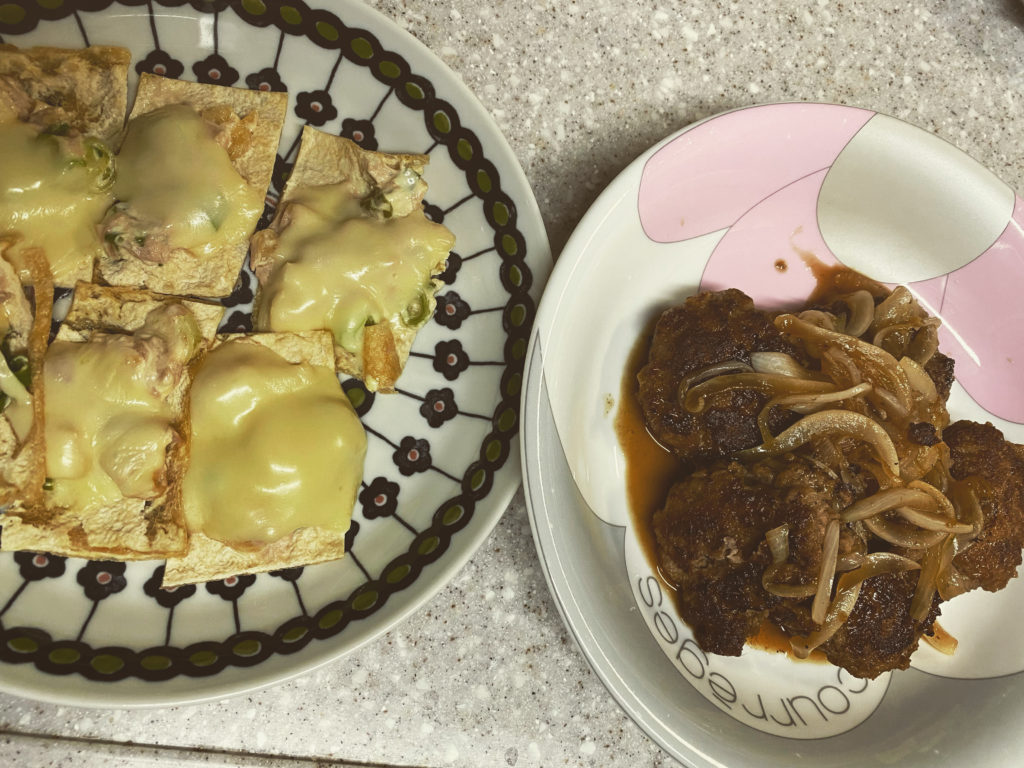 今夜は新玉ねぎのソースで和風ハンバーグ。