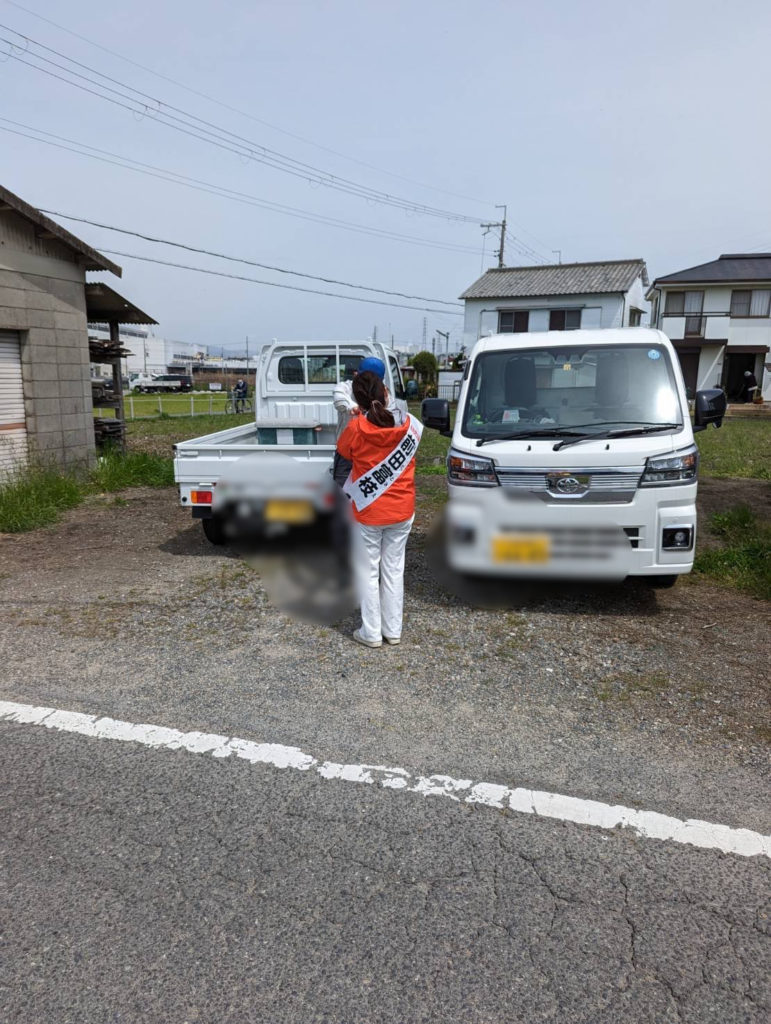 今日は曇り空て時より雨が降ったりしていましたが、街宣車にて活動しました。