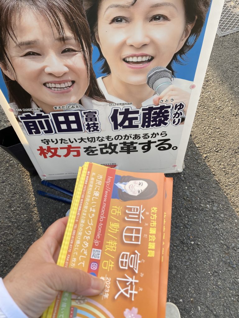 令和5年3月定例月議会や枚方寝屋川消防組合議会の報告のチラシを配布しました。