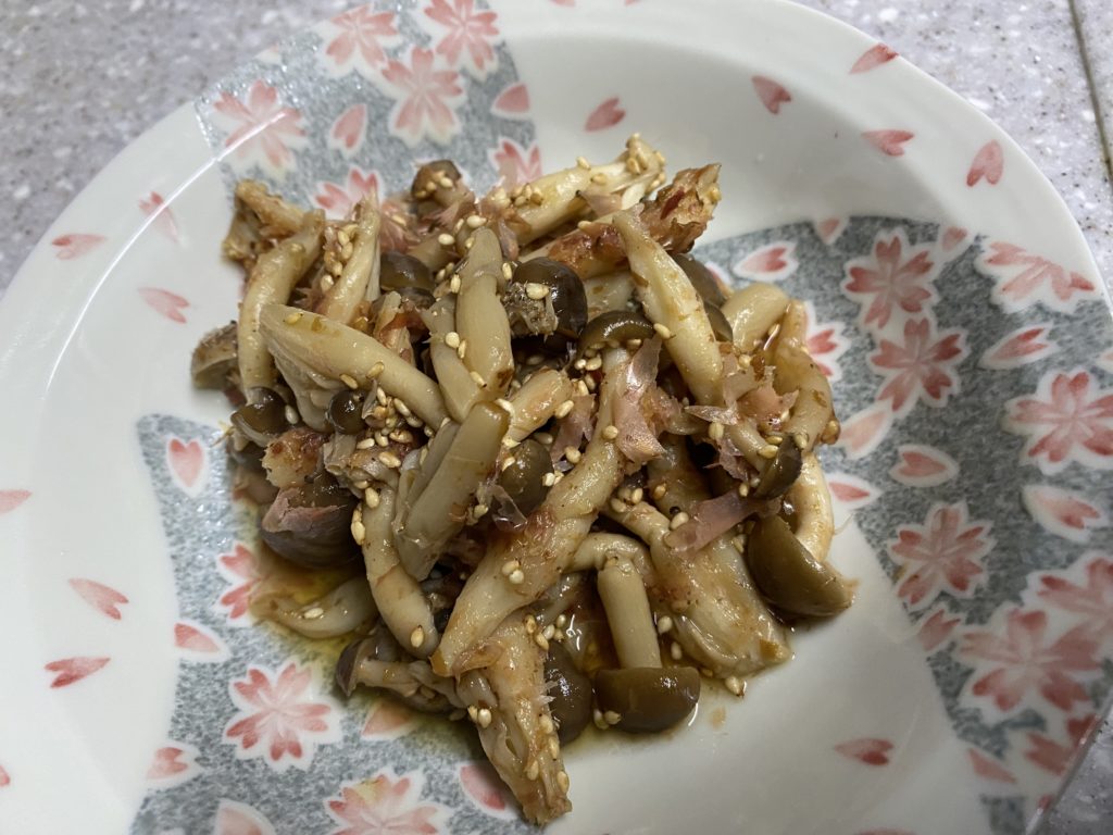 そして今夜はしめじが冷蔵庫にあったので鰹節の和物を作りました。