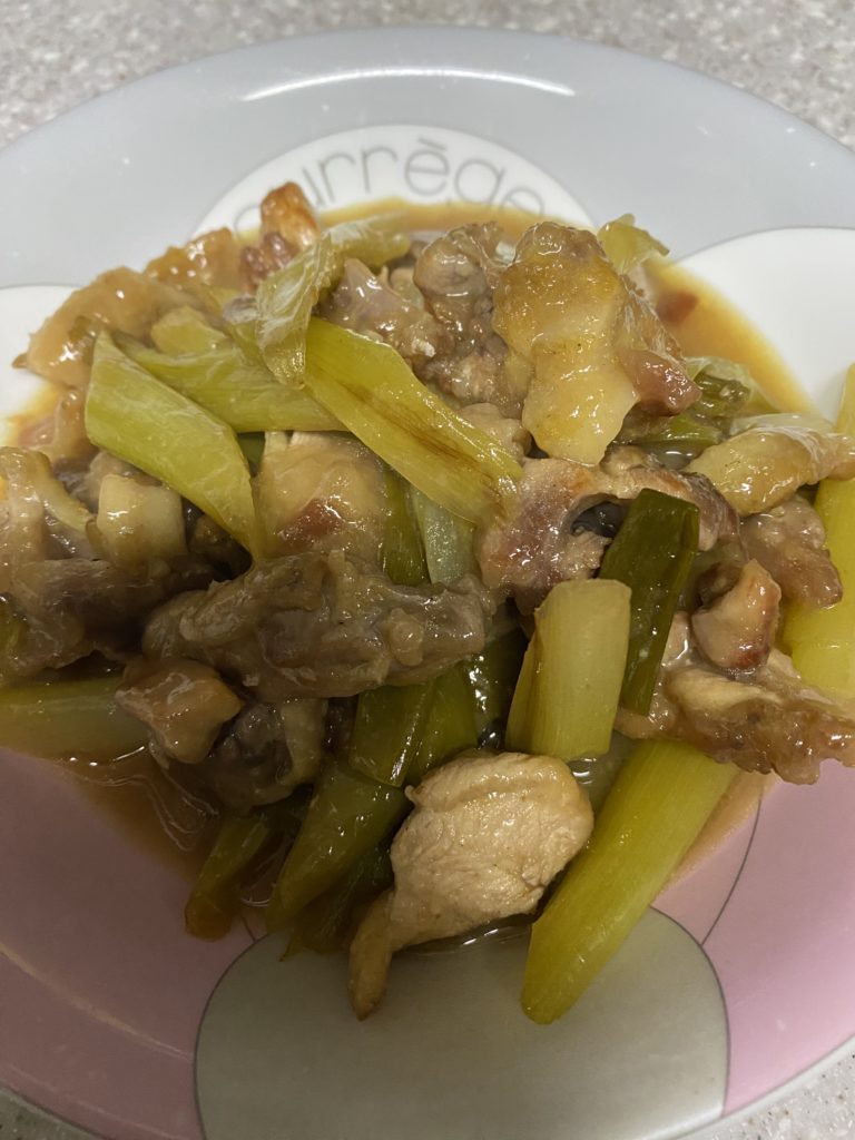 今夜のメニューは鶏肉とネギの梅干し煮。