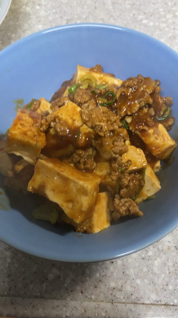 今夜は麻婆豆腐と頂いた葱坊主て天ぷらを作りました。