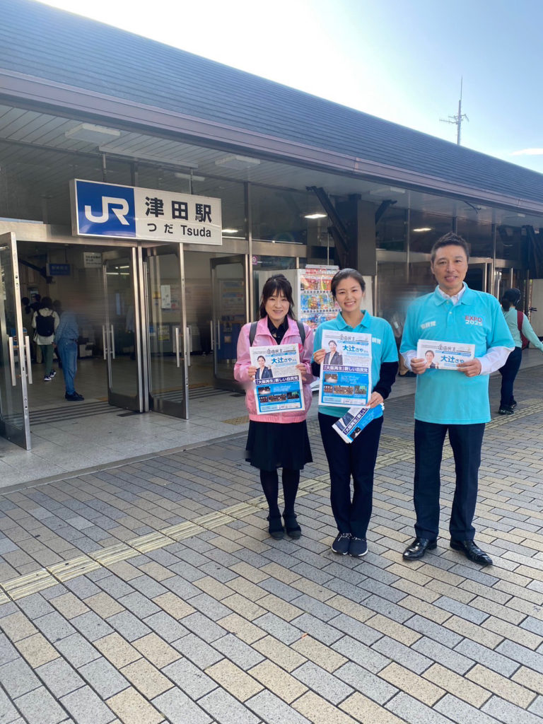 今朝は自由民主党大阪第11選挙区支部 大辻さや支部長と長友議員と共にJR津田駅にて活動。