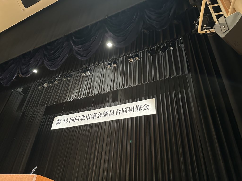 そして午後からは河北市議会議員合同研修会のため、寝屋川市のアルカスホールへ。