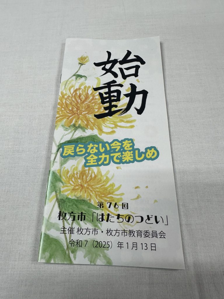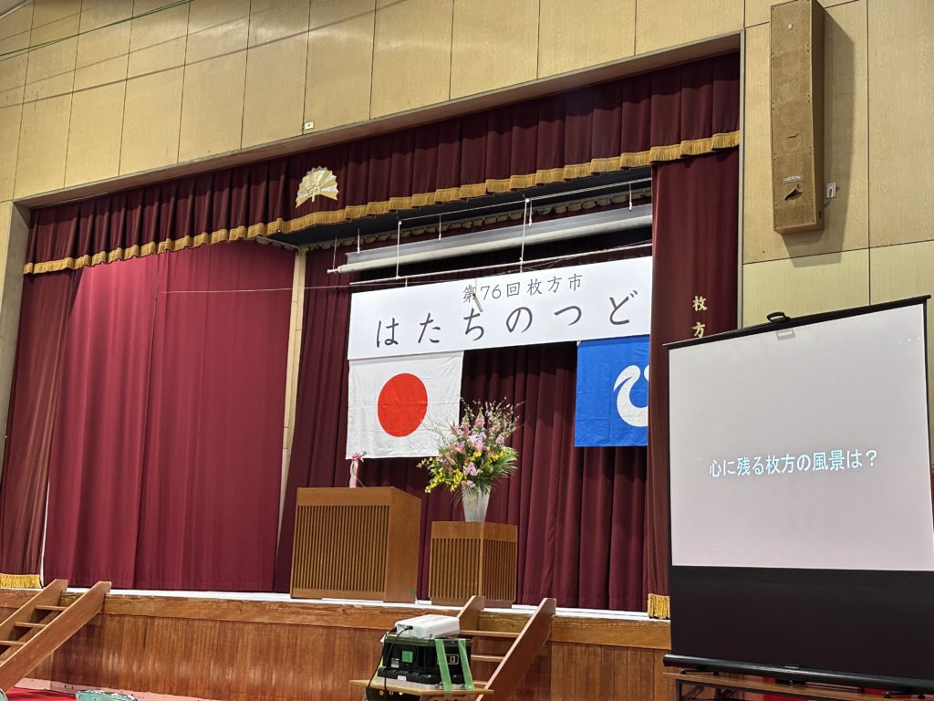第76回 枚方市「はたちのつどい」が今年も市内中学校と教育委員会があるイベントホールの分散方式で行われました。