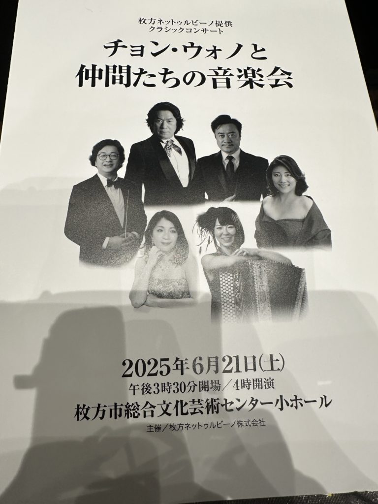そして土曜日の今日は枚方市総合文化芸術センターで開催されたチョン・ウォノと仲間たちの音楽会へ。