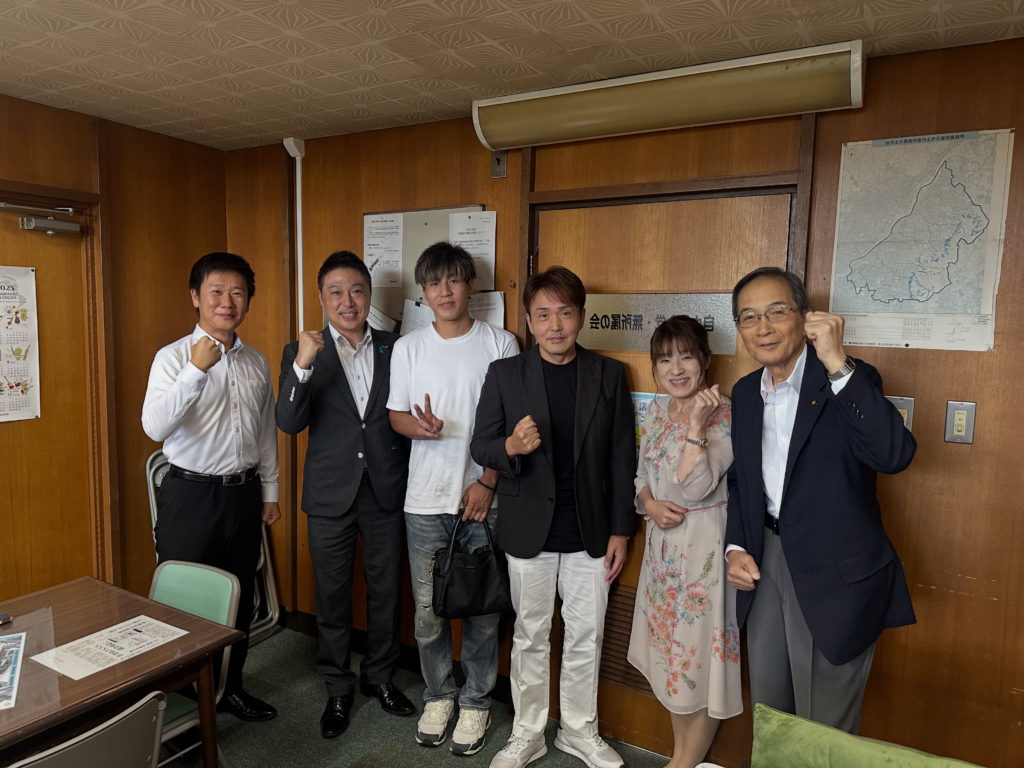 全員協議会開会前に9月14日に名古屋IGアリーナにて判定勝ちしたスーパーバンタム級王者の下町 俊貴選手(グリーンツダ)が市役所にお越しいただきました。下町選手の強さは普段のお姿から想像できないくらい強いです!これからも応援していきます!