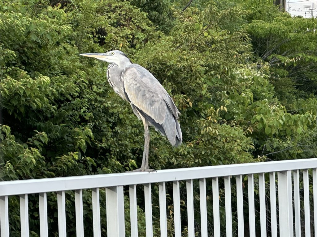 夕刻、アオサギに出会いました。