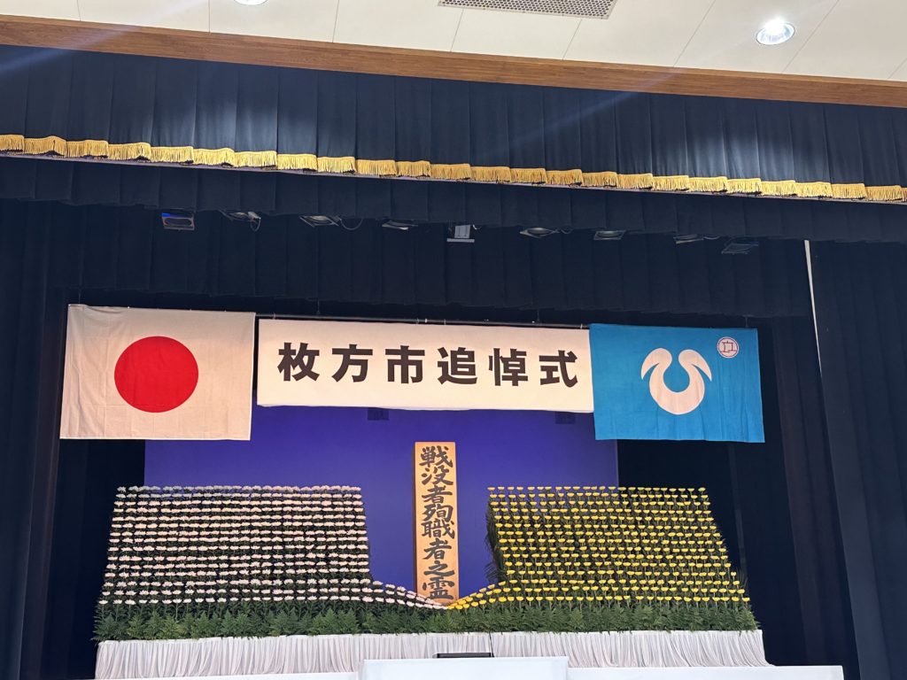 先の大戦でお亡くなりになられた方々、禁野火薬庫の大爆発で犠牲になられた方々、そして殉職された方々1908柱に哀悼の誠を捧げました。