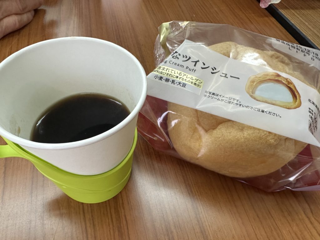 あったかいコーヒーとシュークリームをいただきました。