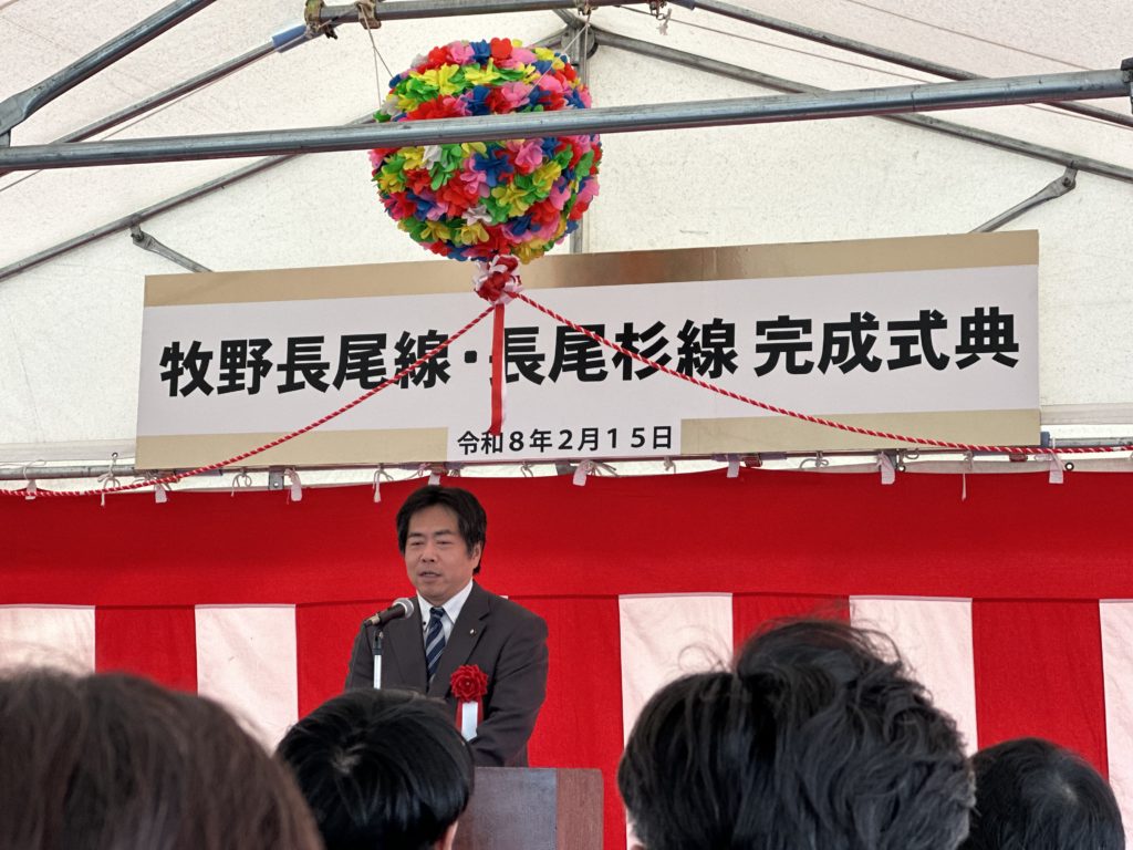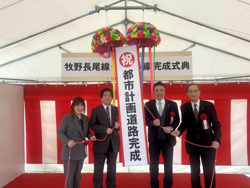 都市計画道路 牧野長尾線(7工区)、長尾杉線(長尾工区)の完成記念式典に寄せていただきました。